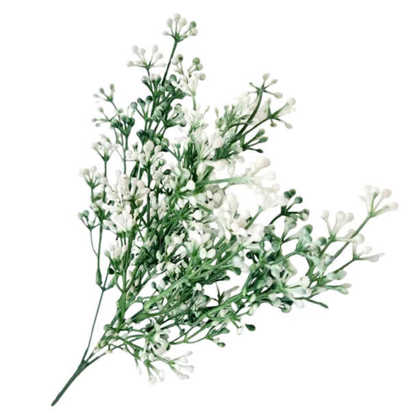 Buchet verdeata artificiala bobite – verde cu alb, 5 fire, 30cm