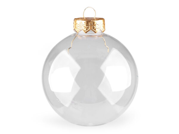 Glob transparent din plastic decorabil cu suport auriu, 10 cm